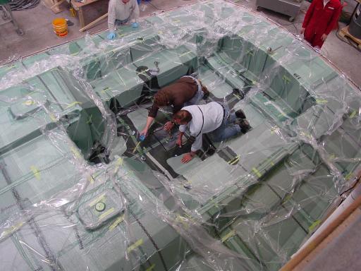 PhotographsUse the controls below the image to view the photographs. Simulation results and photographs in AVI formatClick on the pictures below to view AVI animations of the resin flow simulation (calculated by RTM-Worx) and photographs from preparation and infusion of the deck.