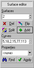 - Surface editor: add, delete, flip and subdivide. The 'flip' command reverses
